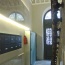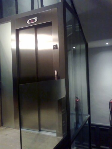 Las paredes del ascensor son de vidrio para que dejen pasar la iluminación desde el hueco situado en cubierta.